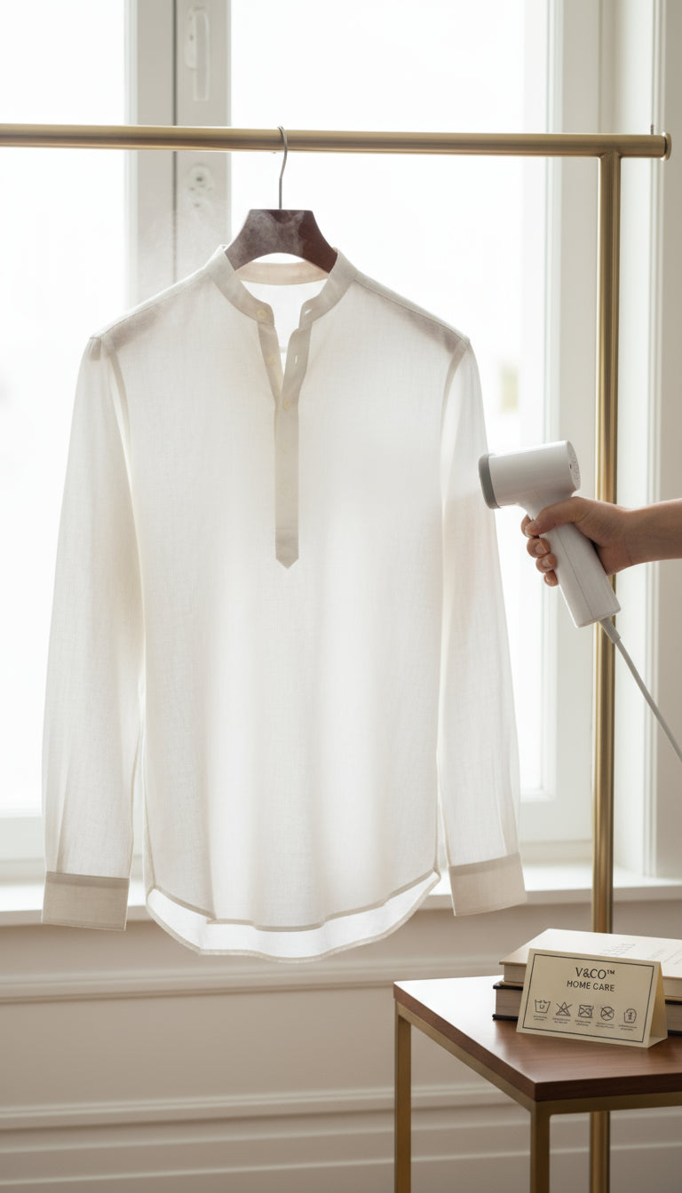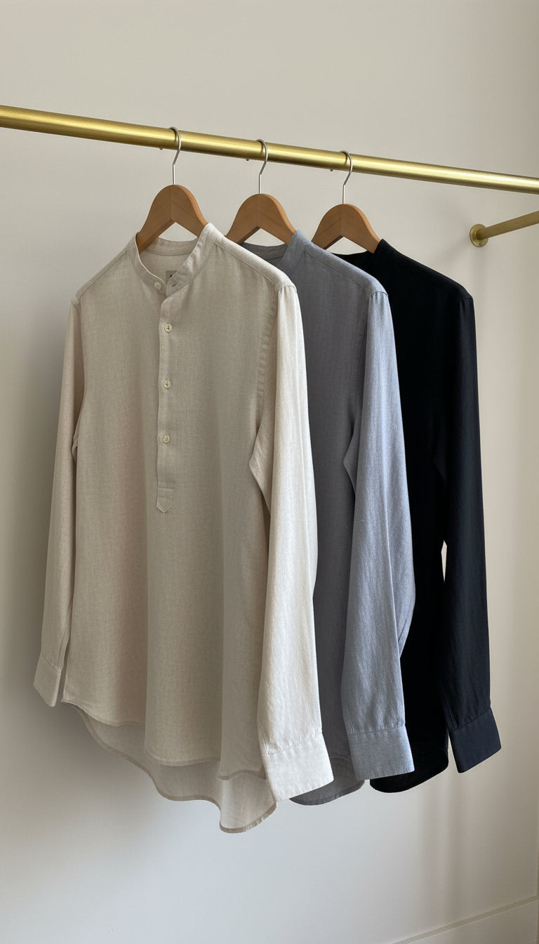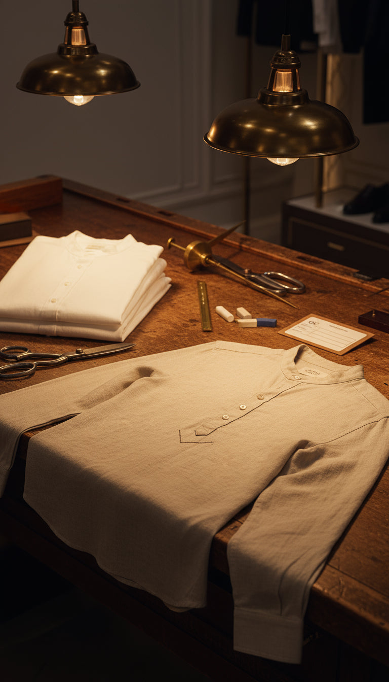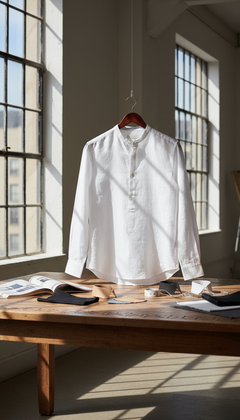 Come in for a calm fitting to dial in band-collar height, sleeve length and V-Fit proportions. Edition-made European linen, stay-flat collar, 4-button popover with V-reinforced base, colors that hold. Real tailoring support and 30-day easy exchanges.