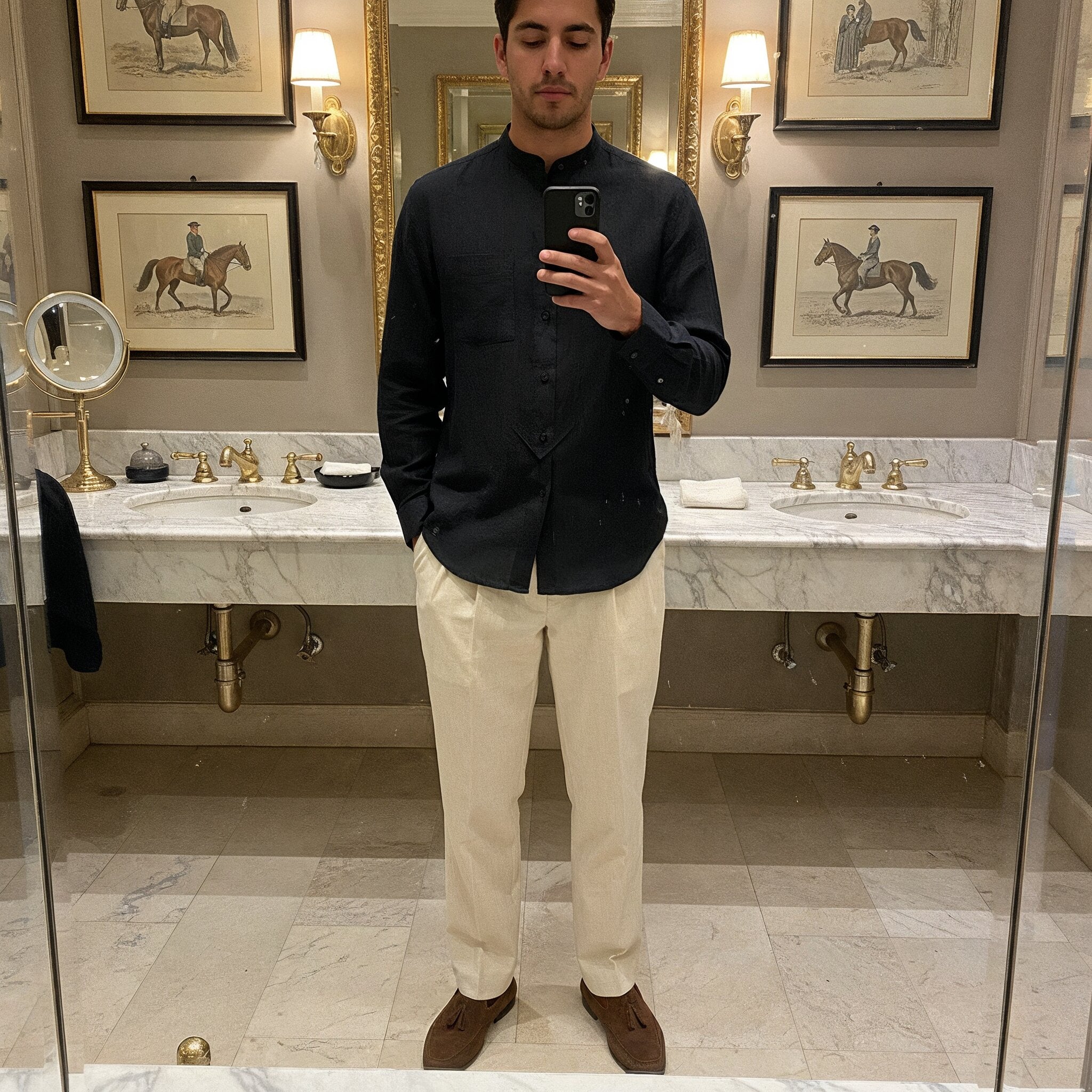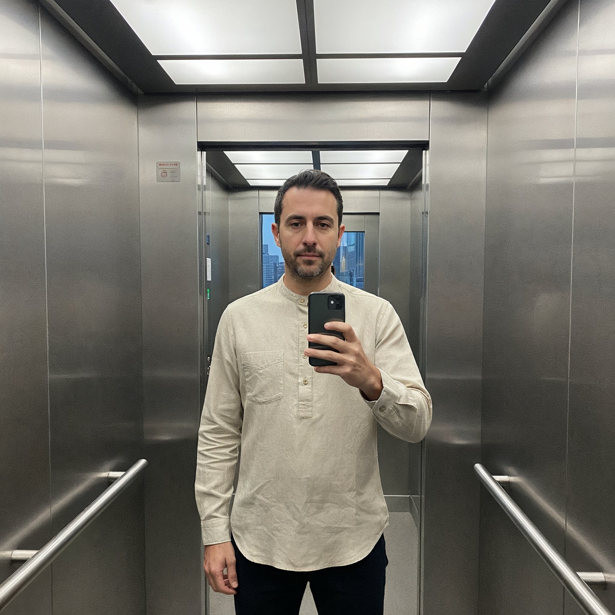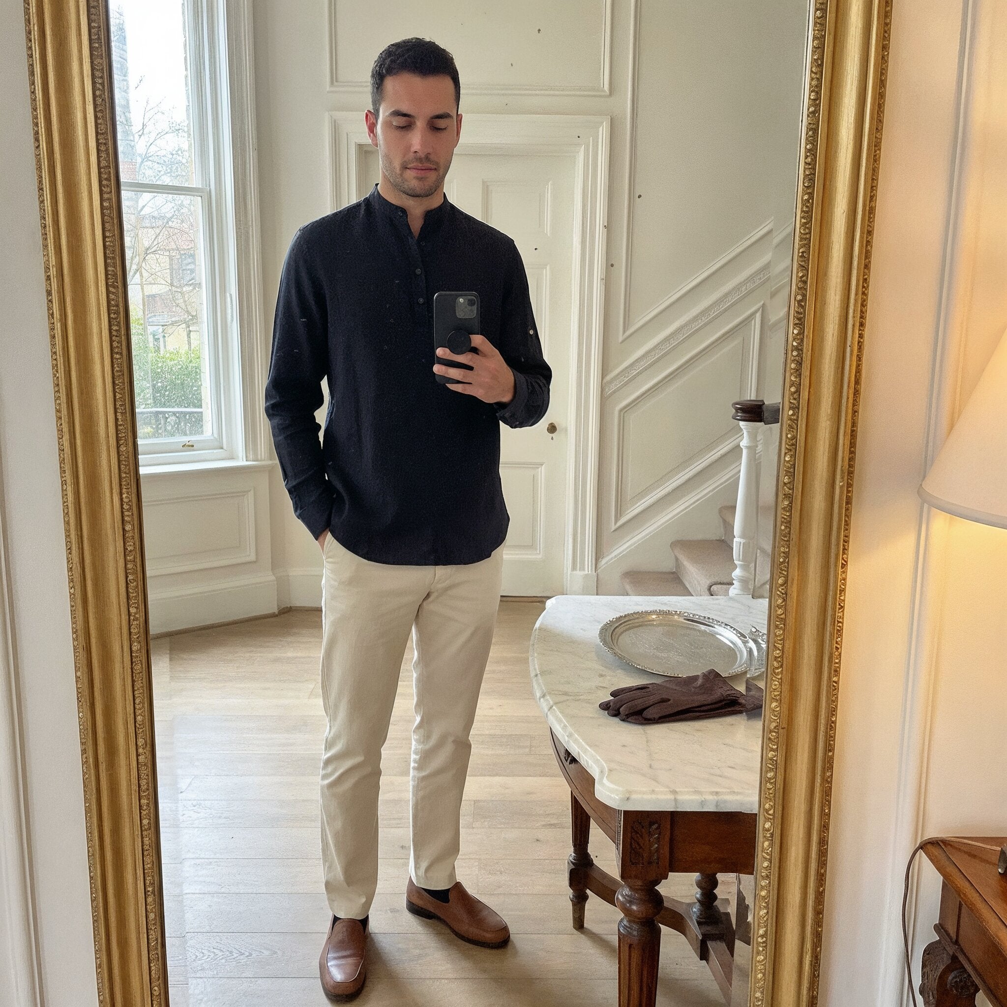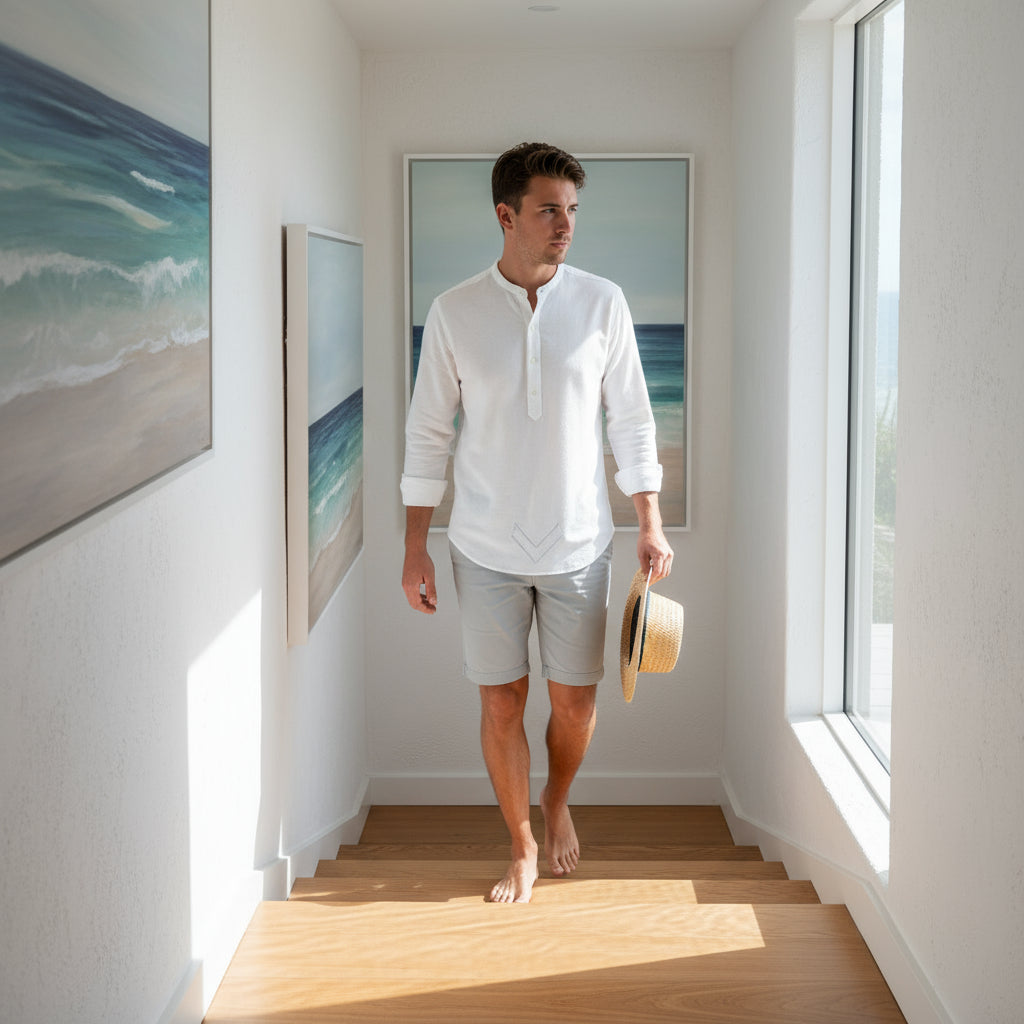 Come in for a calm fitting to dial in band-collar height, sleeve length and V-Fit proportions. Edition-made European linen, stay-flat collar, 4-button popover with V-reinforced base, colors that hold. Real tailoring support and 30-day easy exchanges.