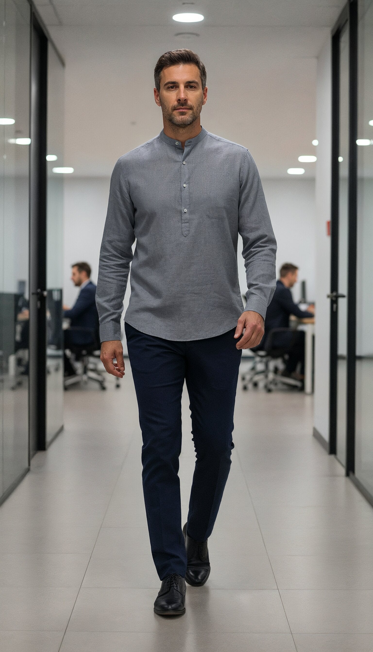 The linen grandad, perfected in our boutique.
